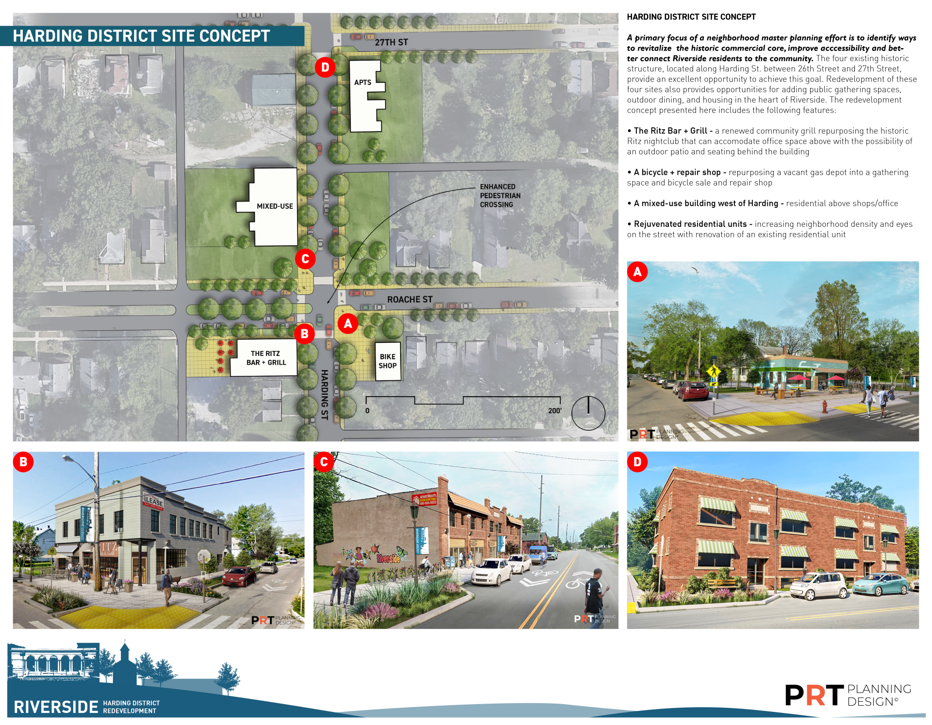 This project ideates and visualizes a master plan for the historic Harding St. and Roache St. commercial node in the heart of Riverside, Indianapolis helping to bring the community closer together through placemaking and increased commercial activity.