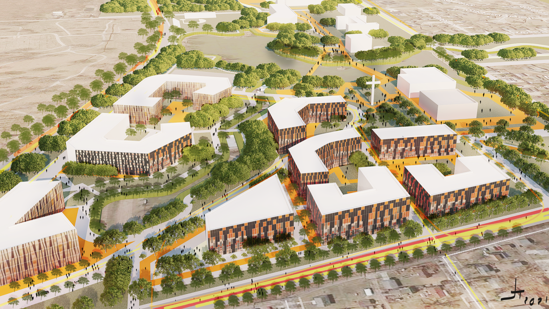 This submission focused on social development as the university doubles its enrollment, placemaking new programs on campus, and scholastic growth by invigorating experiences through academics and leadership. They centralized USF’s programs onto a singular campus with pedestrian-emphasis and sustainable infrastructure.